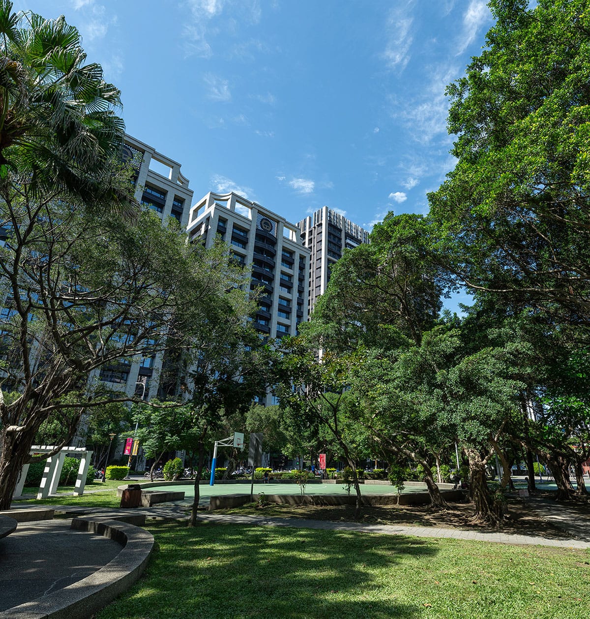 周邊有籃球場、羽球場、健康步道、兒童遊樂場…建築與自然親密連結,生活總有留白的空間。